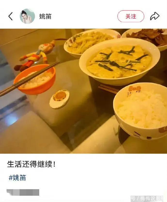 近日,她在社交平台上晒出了自己就餐的画面,桌子上是简单的饭菜,并且略显朴素,连一块肉也没见到,她也发文表示生活还要继续,看到这样的情况确实有些一言难尽。能看到有两副碗筷,能看出是她和孩子的,毕竟桌子上还有小布偶。说明她现在是单亲妈妈的状态,还是很不容易的,更是让人觉得心疼。